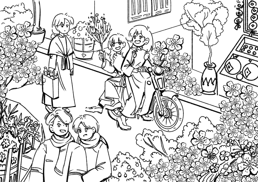 Tranh tô màu 2D gắn với cuộc sống thường nhật của sinh viên